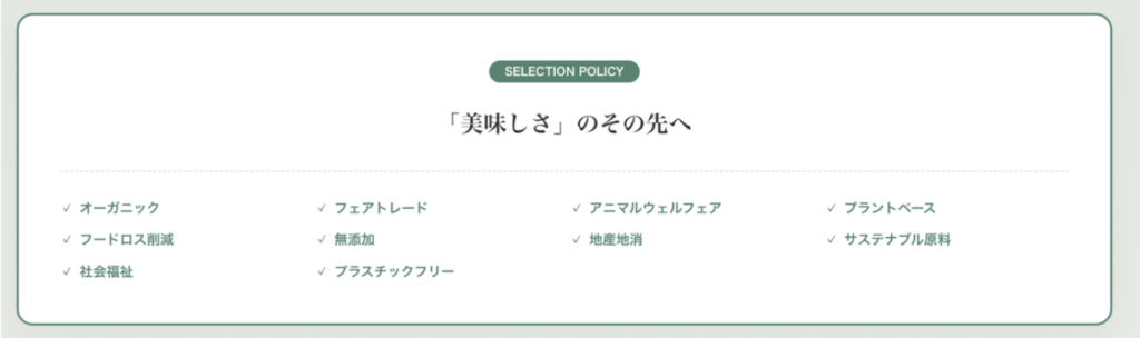 そんな体験を届けたくて、オーガニック、フェアトレード、プラントベース、アニマルウェルフェアなど、複数のサステナブル基準のうち2つ以上を満たした出店者のみを厳選しました。